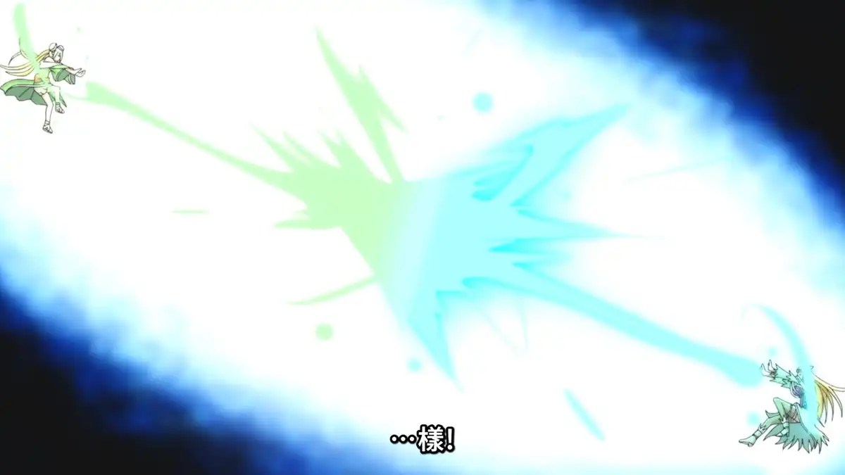 剧情续上一话,精灵篇来到了尾声,姐妹正式开打,姐姐先对一波龟派气功,然后搓元气弹准备下死手时,彼得来阻止了姐妹相残,帮助她们和好如初,一个人默默的承担了所有