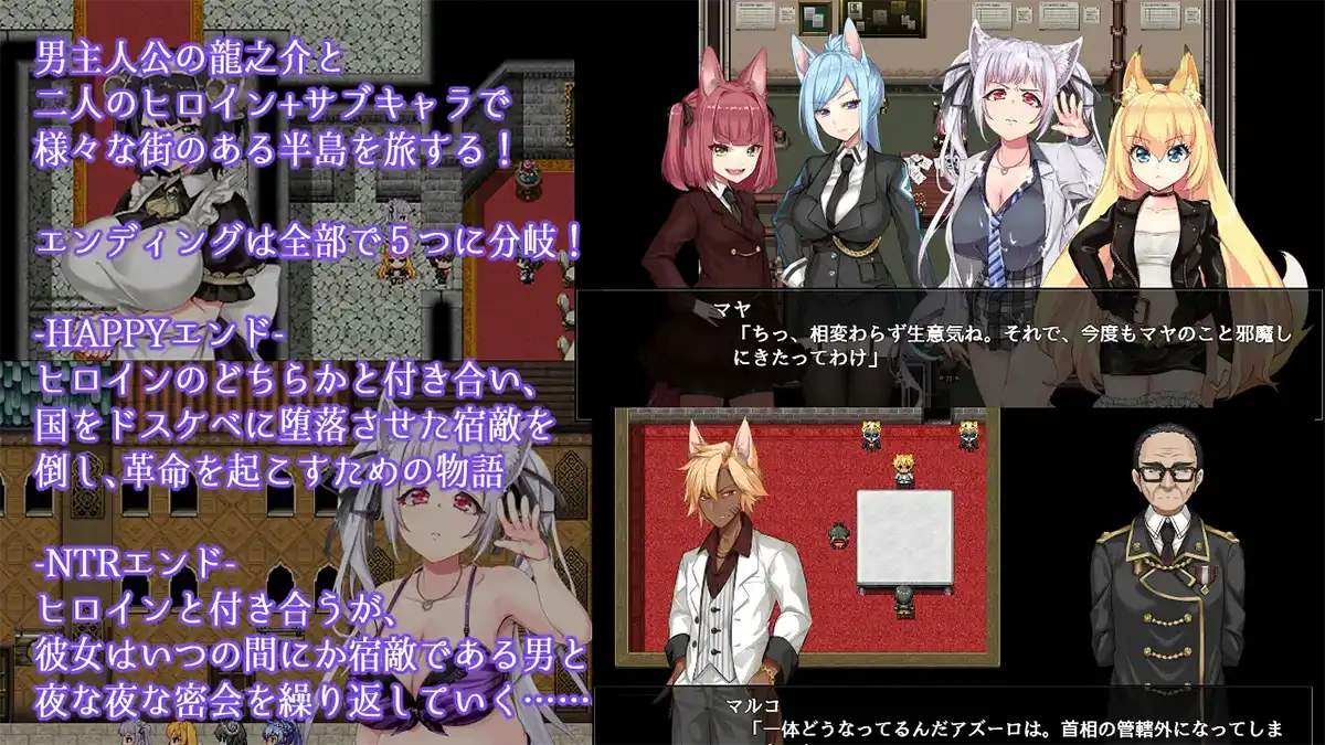 今作は男主人公とメインヒロイン二人、そのたサブキャラクターと共に、スケベであふれる共和国を元に戻す旅にでかけます!