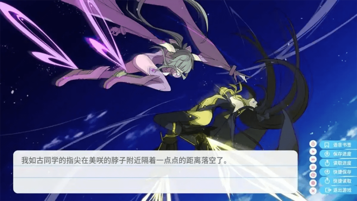 而“EXTRA2”所做的,便是利用紫苑的成长和对胜利的执着,来补足这种遗憾。在和真藤对决的高潮部分,游戏利用本篇中玩家最熟悉的对战曲目《Rash and Rush-無限軌道-》作为陪衬,在经过人声的重新演绎后,将青柳紫苑作为“另一名主角”的人格魅力彻底释放出来,完成了全篇在情绪、文字与视觉渲染上的巅峰。