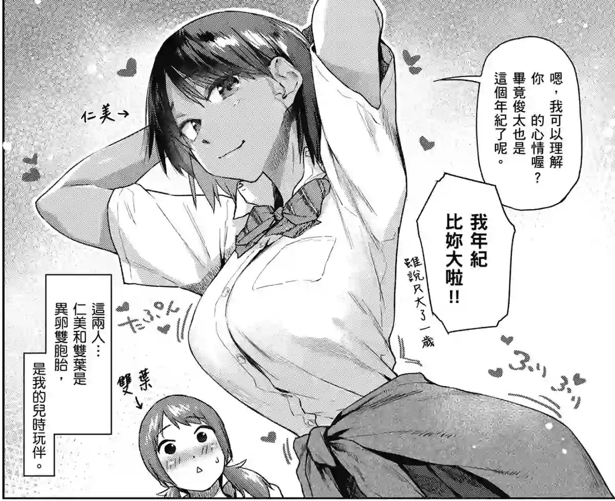 スポーティーな日焼けっ娘のひとみと、色白おさげっ娘のふたば。