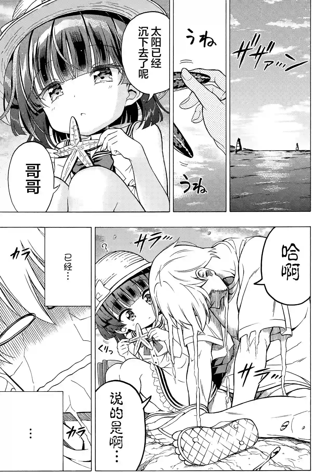 漫画更新到了第三话,琉璃子很喜欢哥哥,这次和哥哥一起去海边学习游泳
