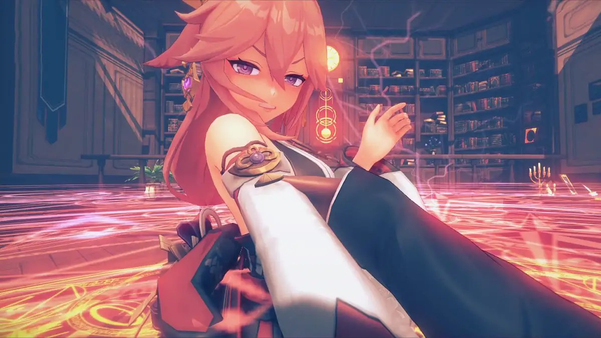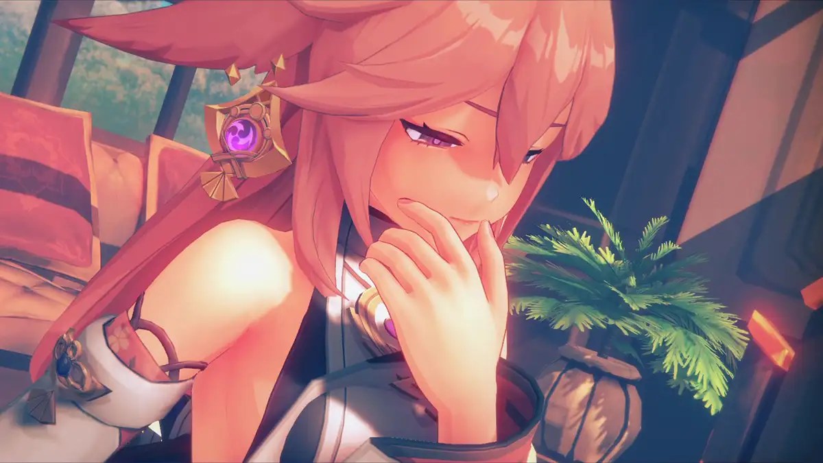 腰まで伸びた赤みがかった髪はラフにポニーテール。